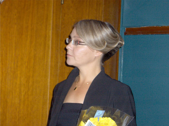 (Kuva: Heini Kainulainen väitöstilaisuudessa Helsingin yliopistossa 14.8.2009)